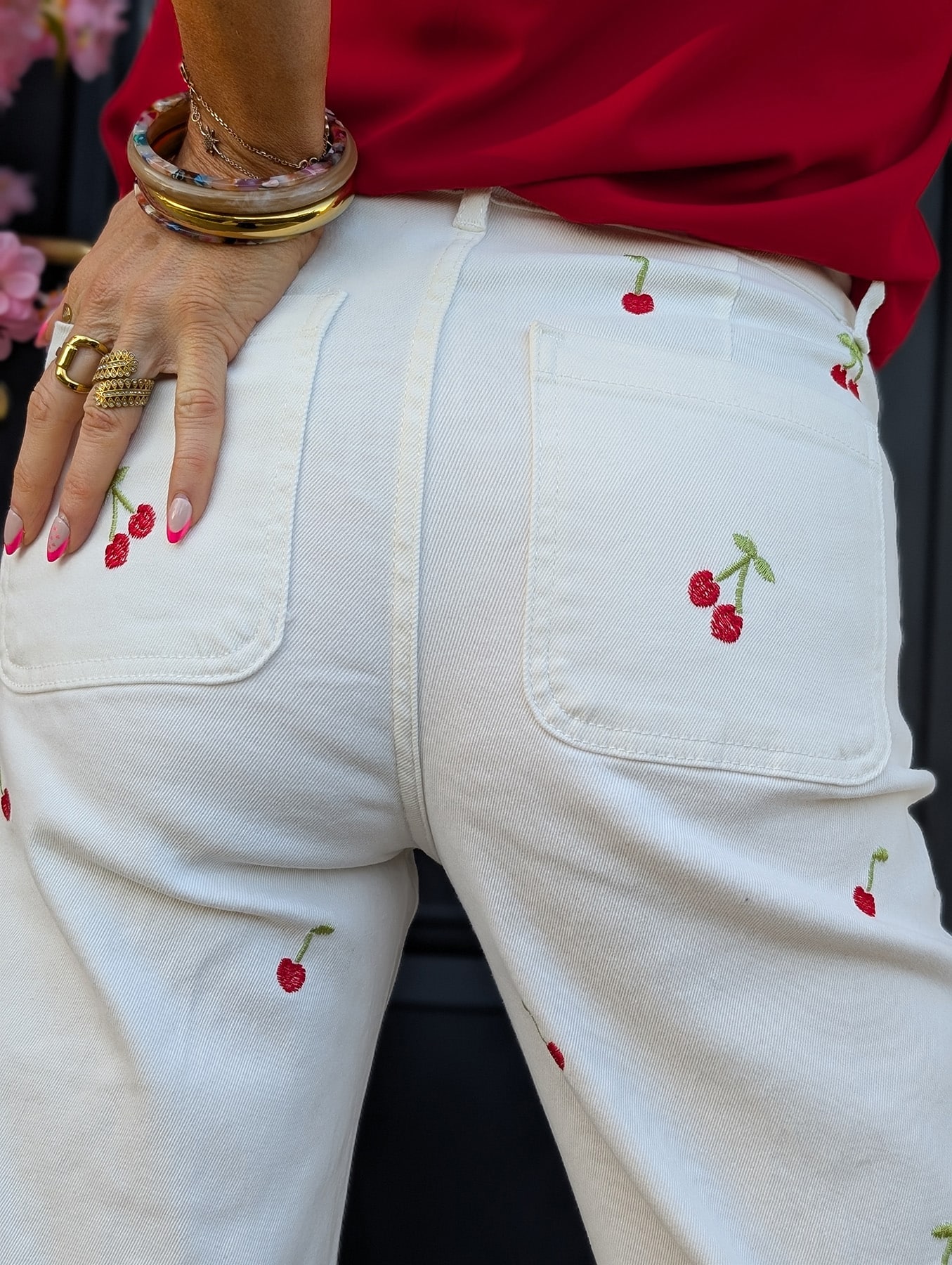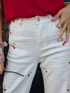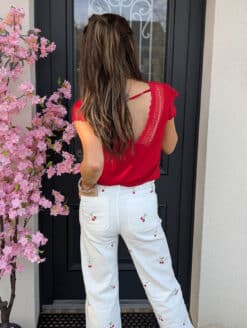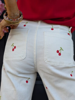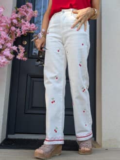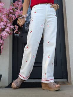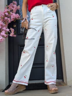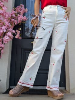 Coup de cœur final pour les frises toujours en broderies rose et rouge qui s’invitent sur les chevilles pour sublimer votre silhouette jusqu’en bas de vos jambes. Et soudain le charme s’empare de votre look, vous êtes à craquer, prête à rayonner cet été !