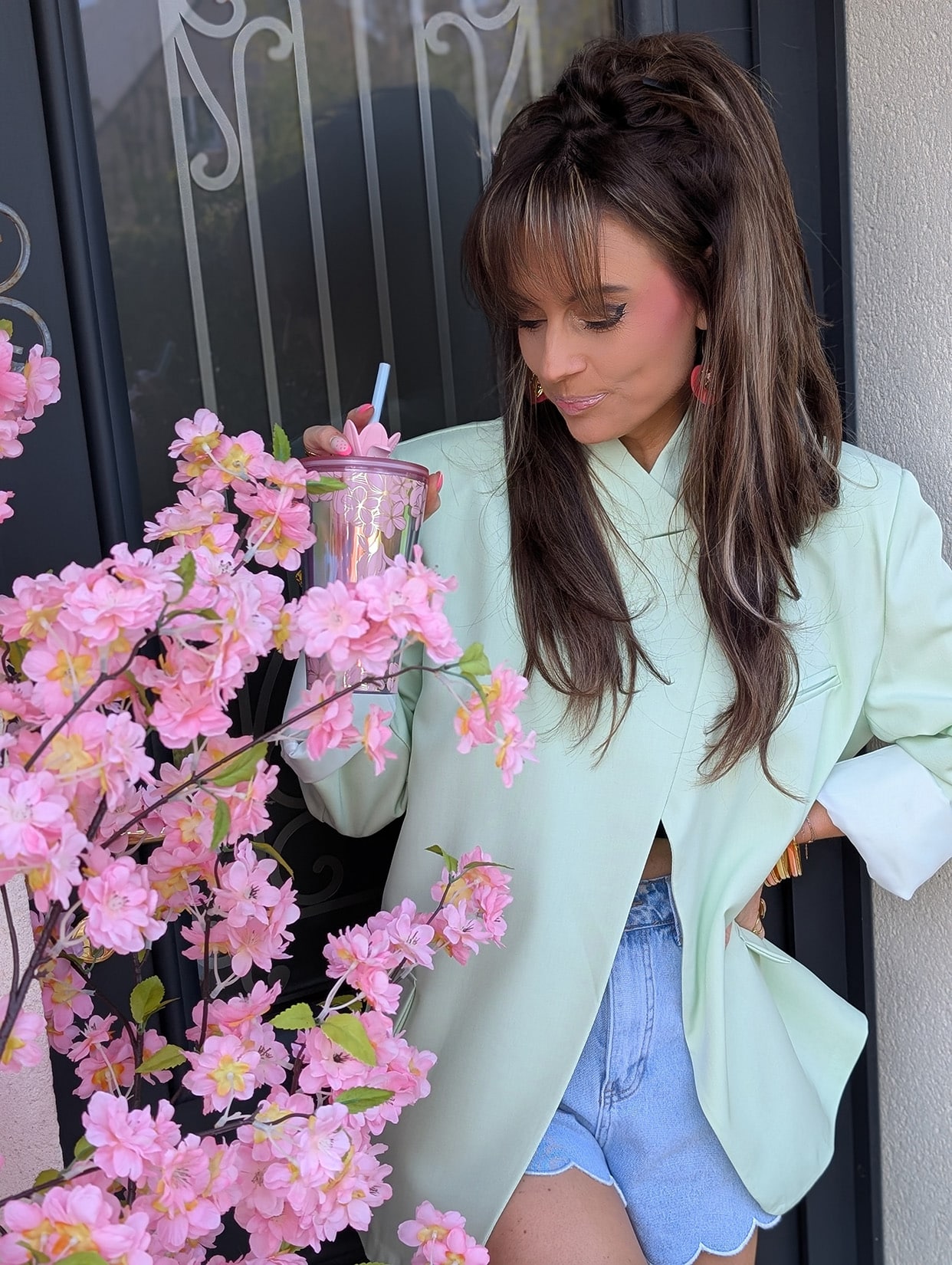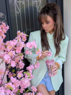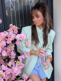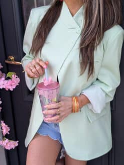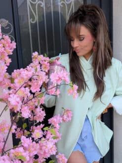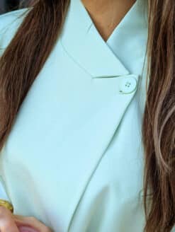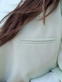 Blazer élégant, à la coupe longue, structurée et moderne : succombez à son doux coloris pistache, si tendance et lumineux à la fois !