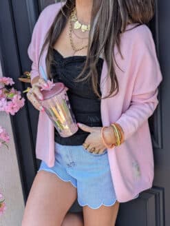 On craque pour son doux coloris rose poudré… Il sait apporter aussi bien la douceur dans sa matière, que dans sa couleur, mais il sait aussi éveiller en douceur votre look, apportez une pointe de chaleur dans vos looks avec cette pépite du dressing !
