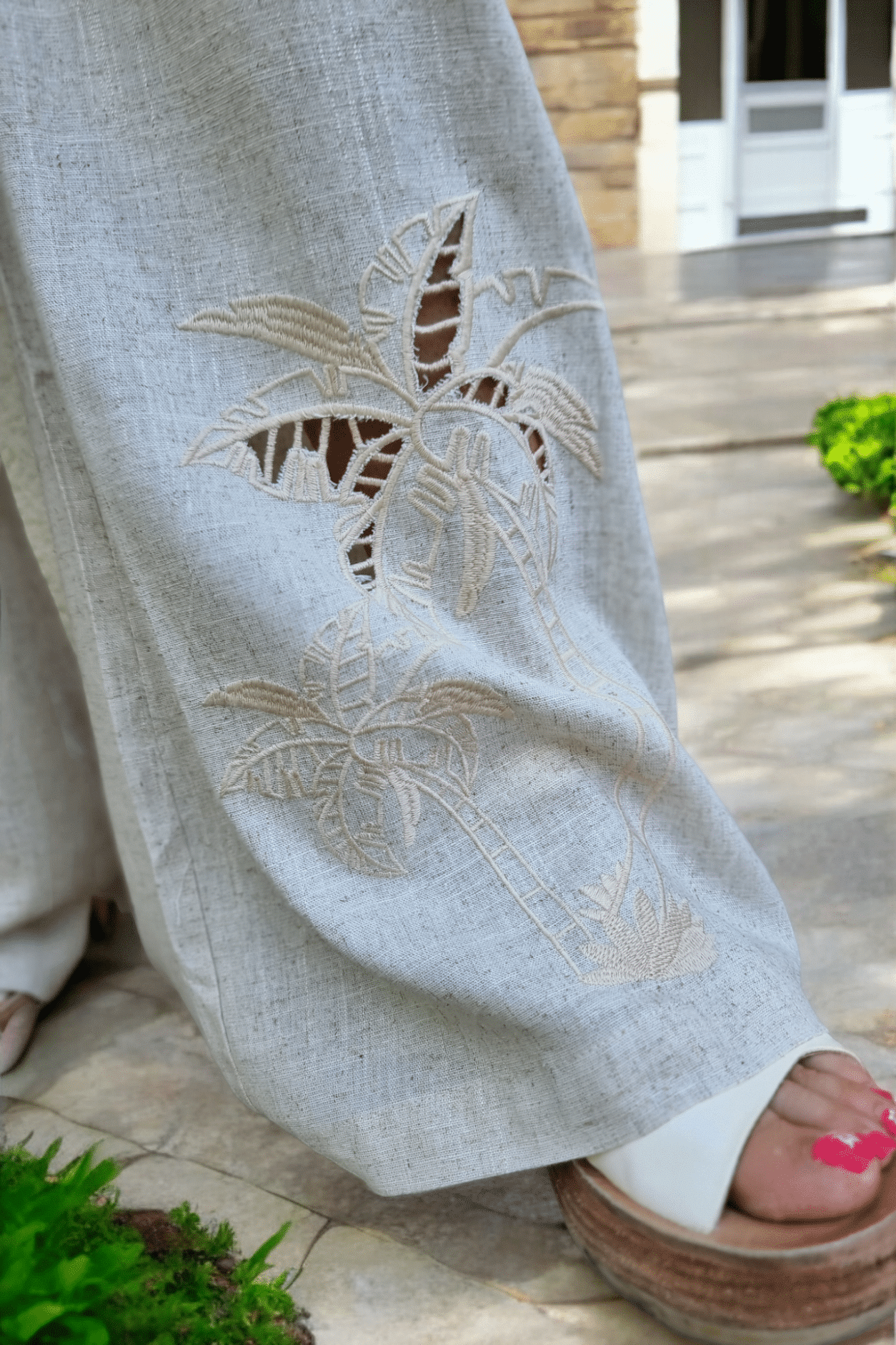 Des détails uniques : de jolies broderies exotiques ajourées sur le bas des jambes, qui laissent entrevoir subtilement la peau pour une touche de fantaisie irrésistible.