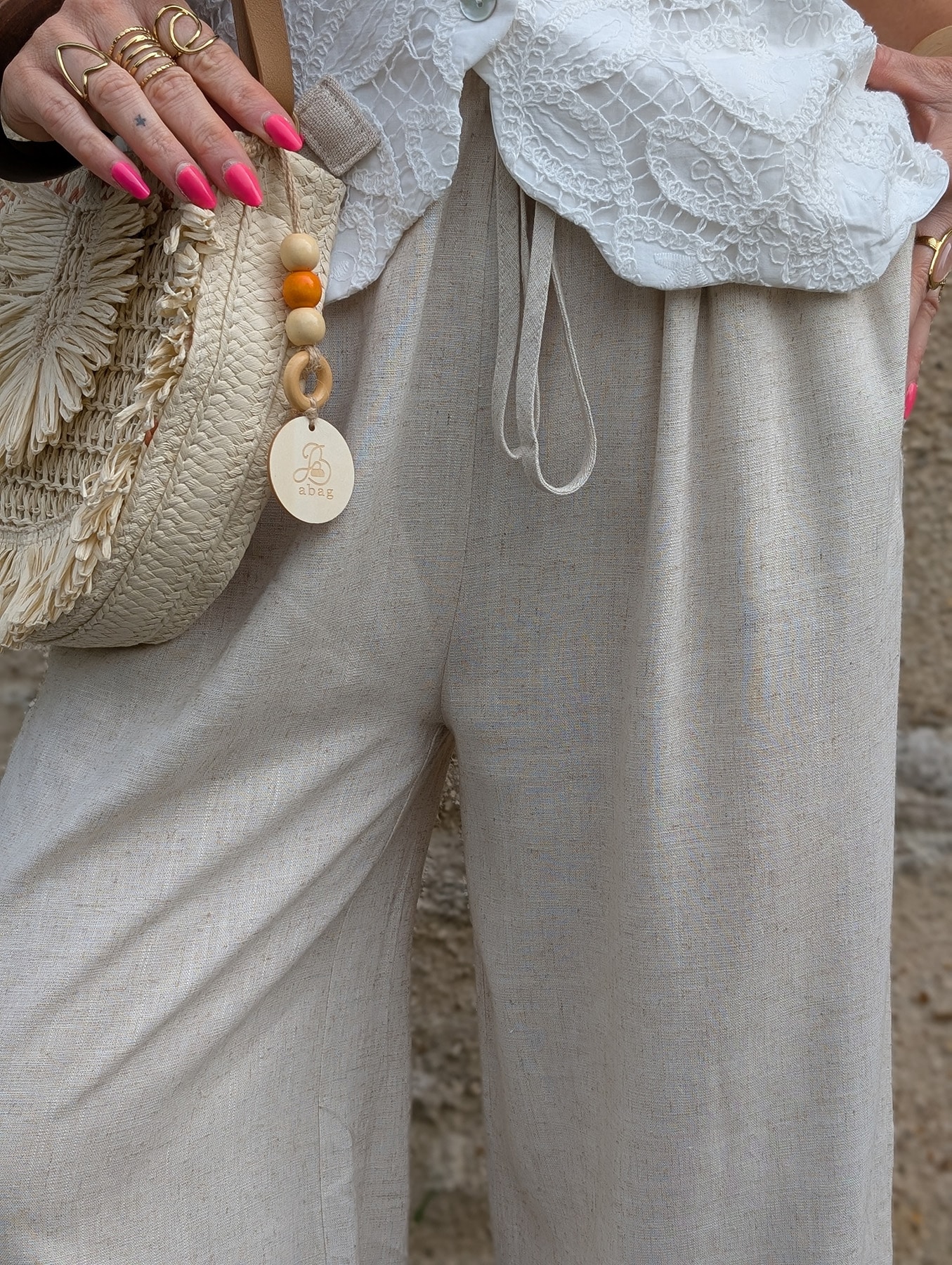 Fluide et léger : un mélange de lin et de viscose qui offre une sensation de fraîcheur et de légèreté, idéale pour les journées ensoleillées.