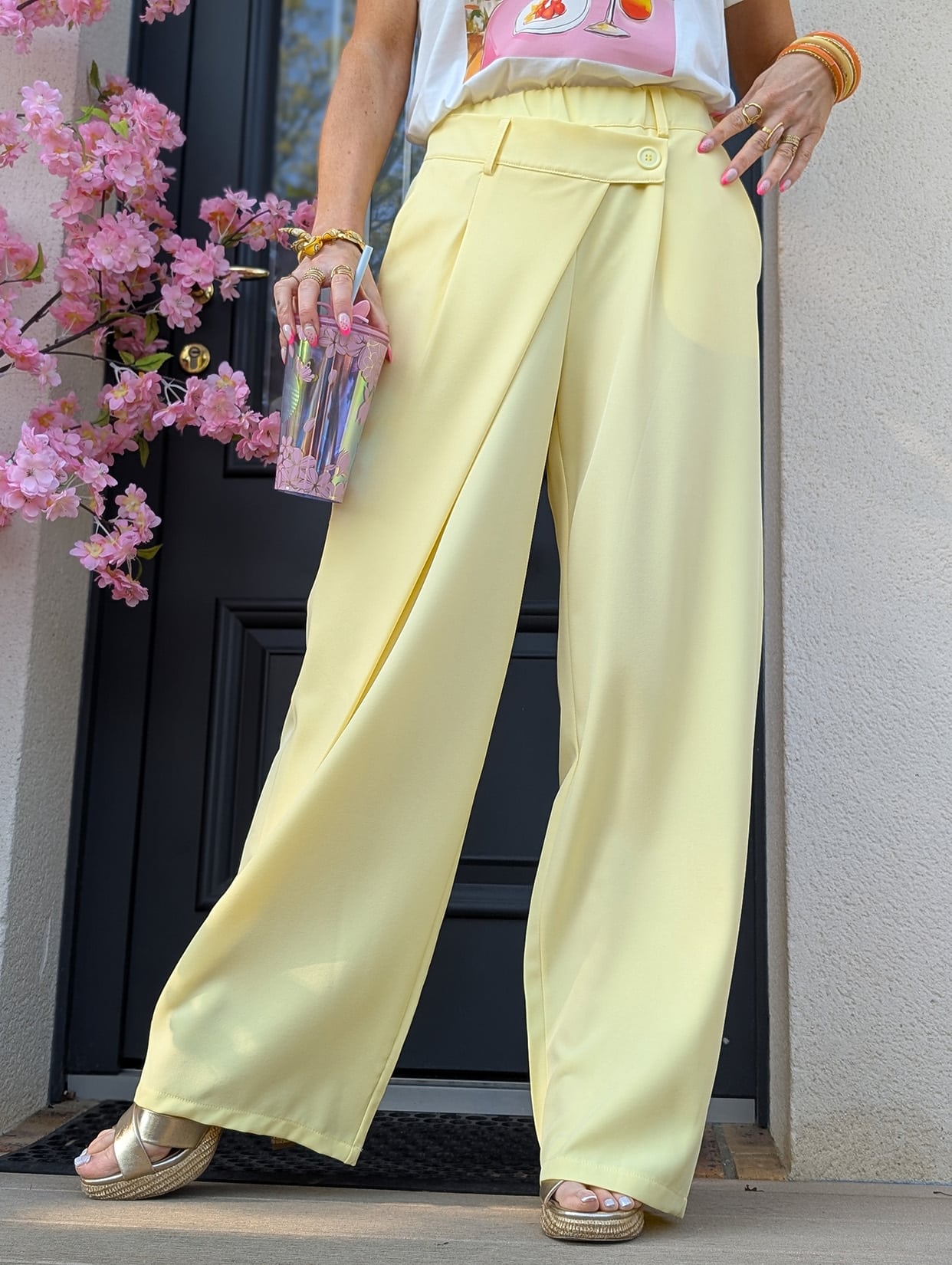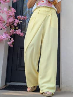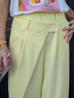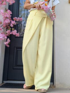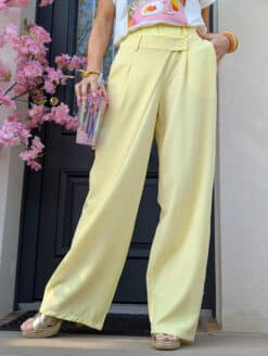 Un pantalon tailleur au coloris jaune citron, votre idéal du dressing pour vous sentir habillée et lumineuse lors d’un évènement !