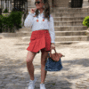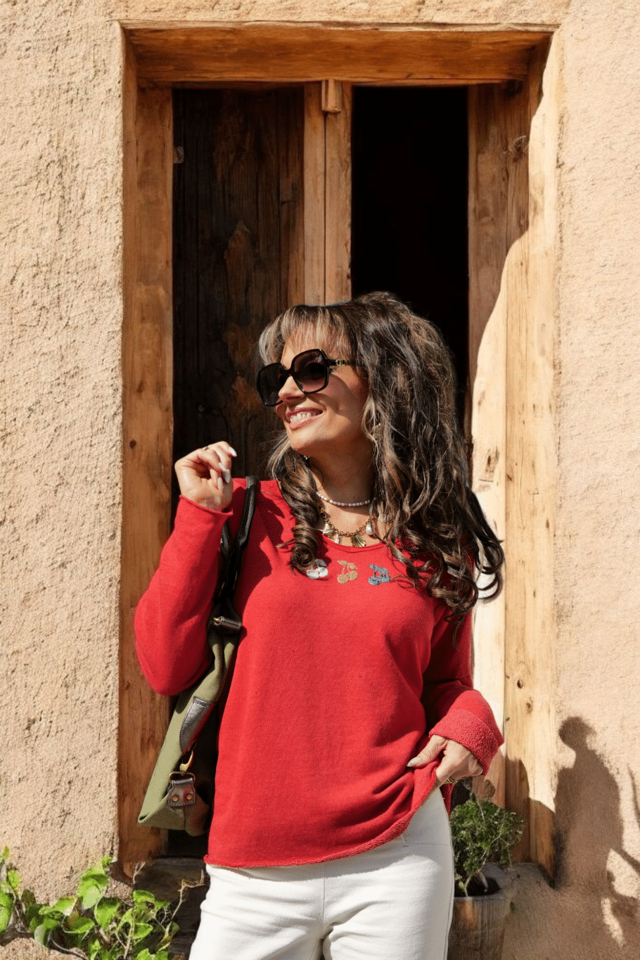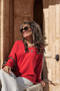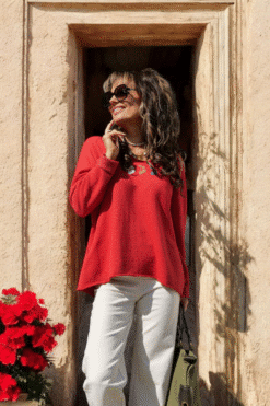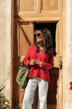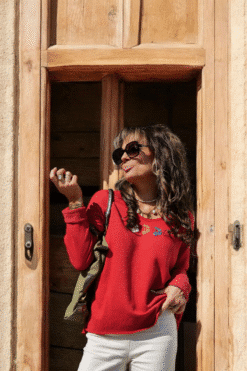 Apportez une touche de fraîcheur et de fantaisie à vos tenues avec ce pull ample en maille légère signé Lacom. Son rouge éclatant illumine le teint, tandis que les trois petites broderies cerises, dans des tons crème, camel et bleu, ajoutent une note ludique et délicate.