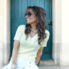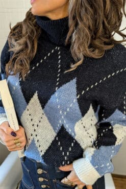 On aime son imprimé losanges aux nuances de bleus et indigos mélangés dans sa coupe droite. Le tout donne naissance à votre look structuré, habillé et confortable : le top pour tous les jours !