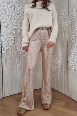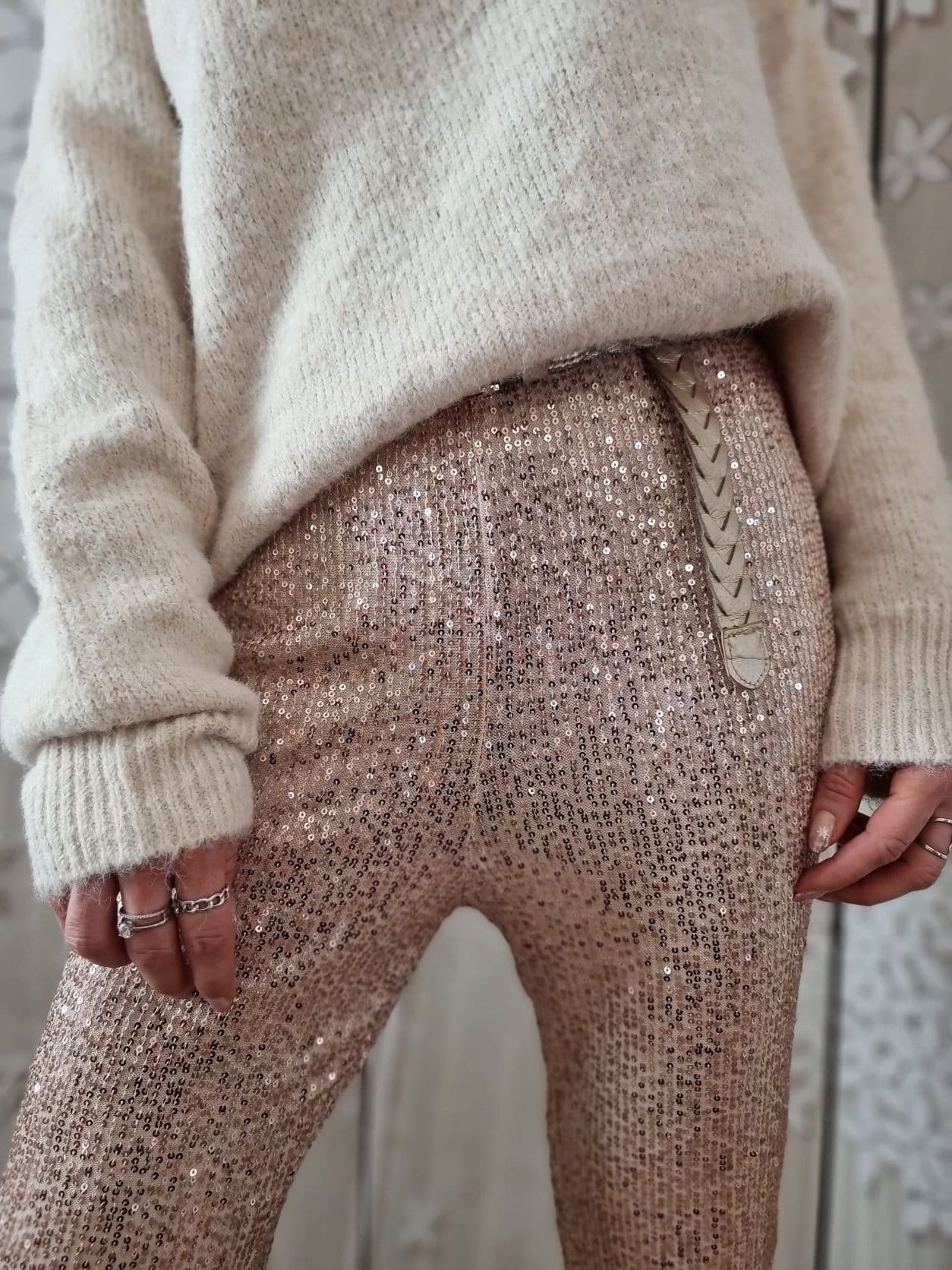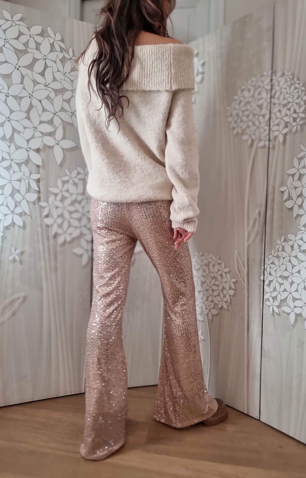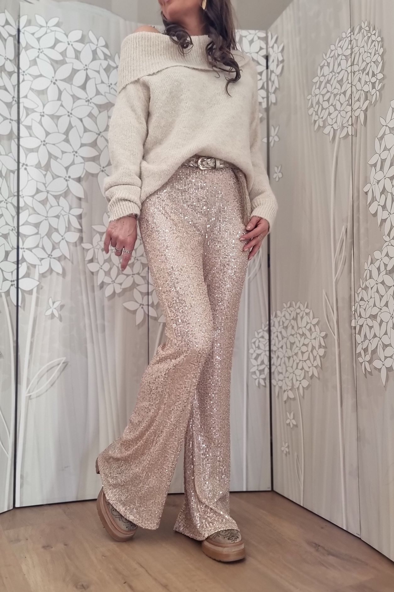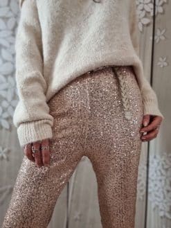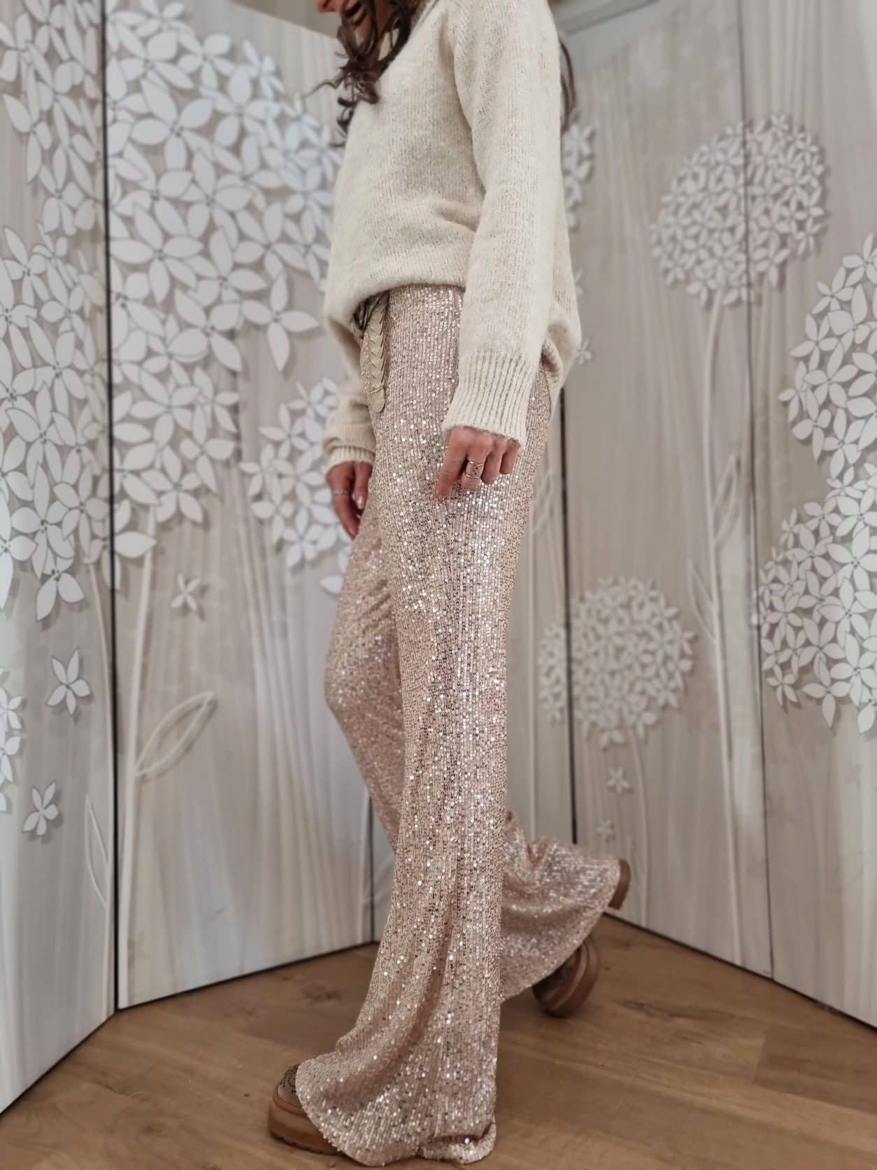 💫 Optez pour l’éclat du glamour avec notre pantalon beige en sequins ! 💫