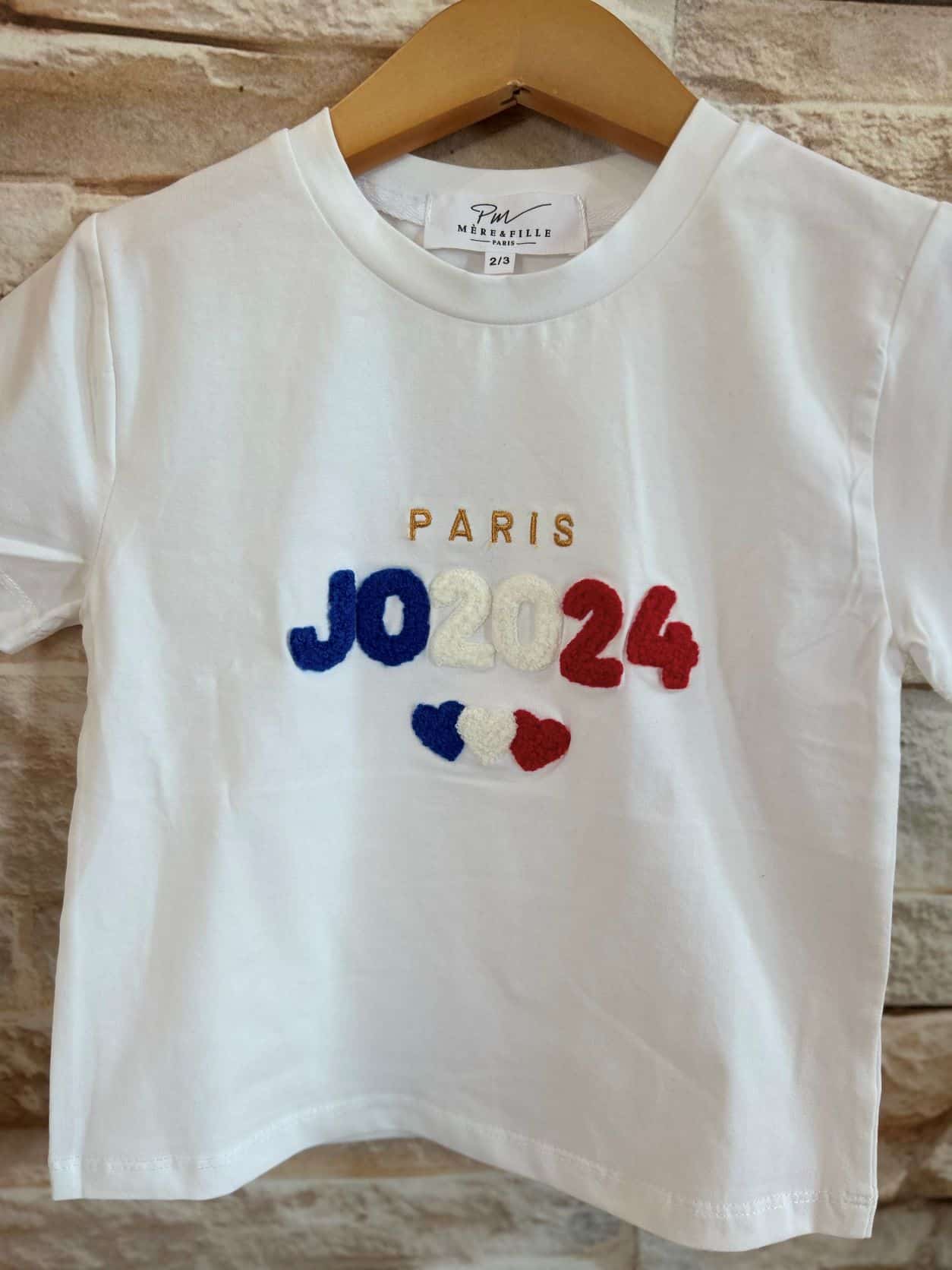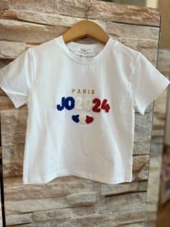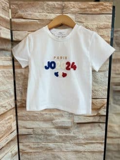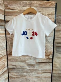 🎉 Soyez prêts pour l’esprit olympique avec notre tee-shirt JO 2024 pour les petites championnes en herbe ! 🏅✨ Ce tee-shirt blanc éclatant est orné d’une typographie en relief, célébrant l’événement sportif le plus excitant de l’année !