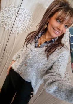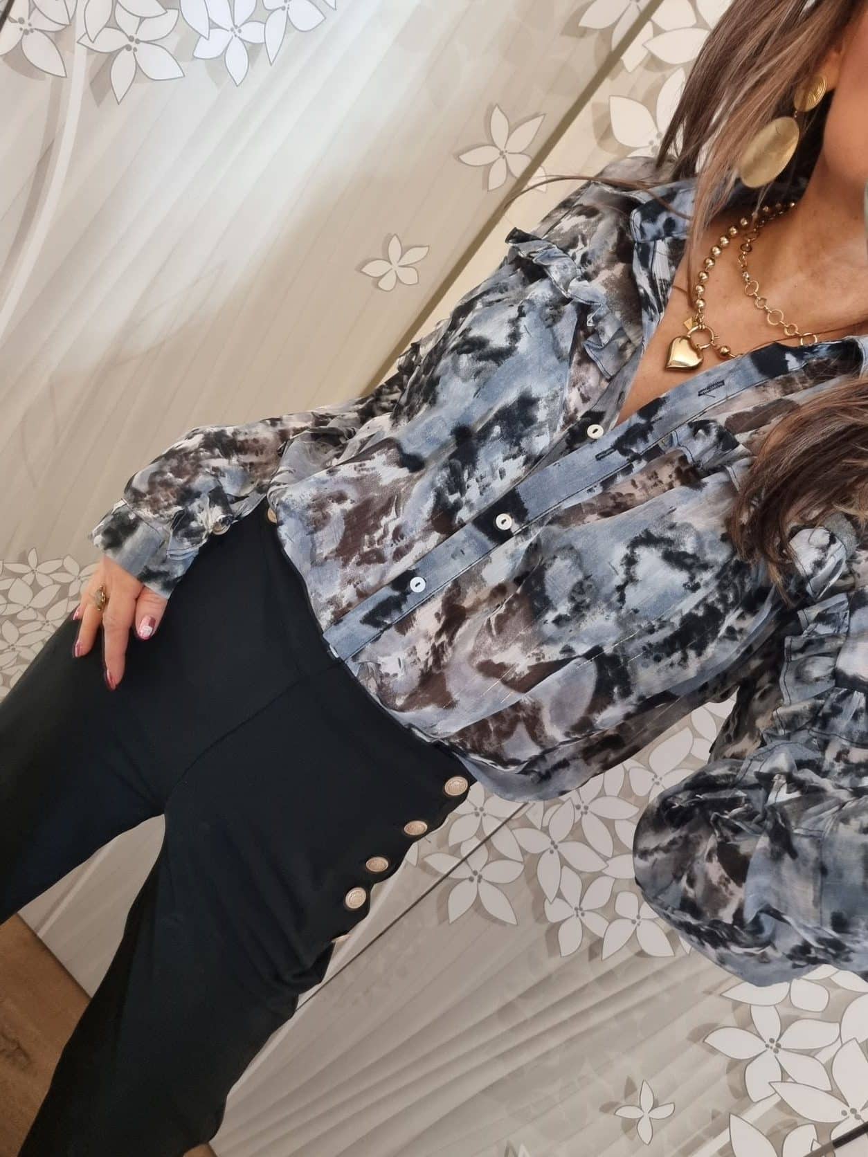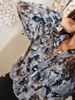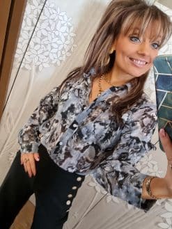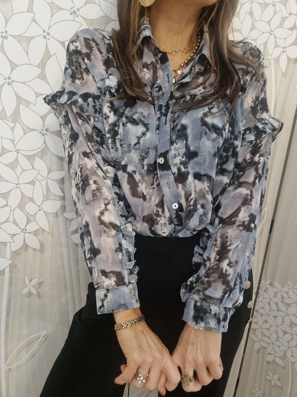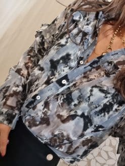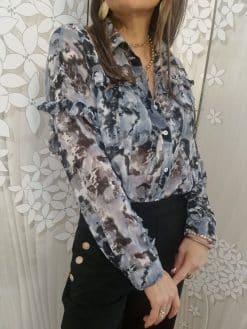 🌟 Sublimez votre garde-robe avec notre Chemise Fluide Grise, ornée de Détails Volantés et de Fils Brillants pour une élégance inégalée ! 🌟