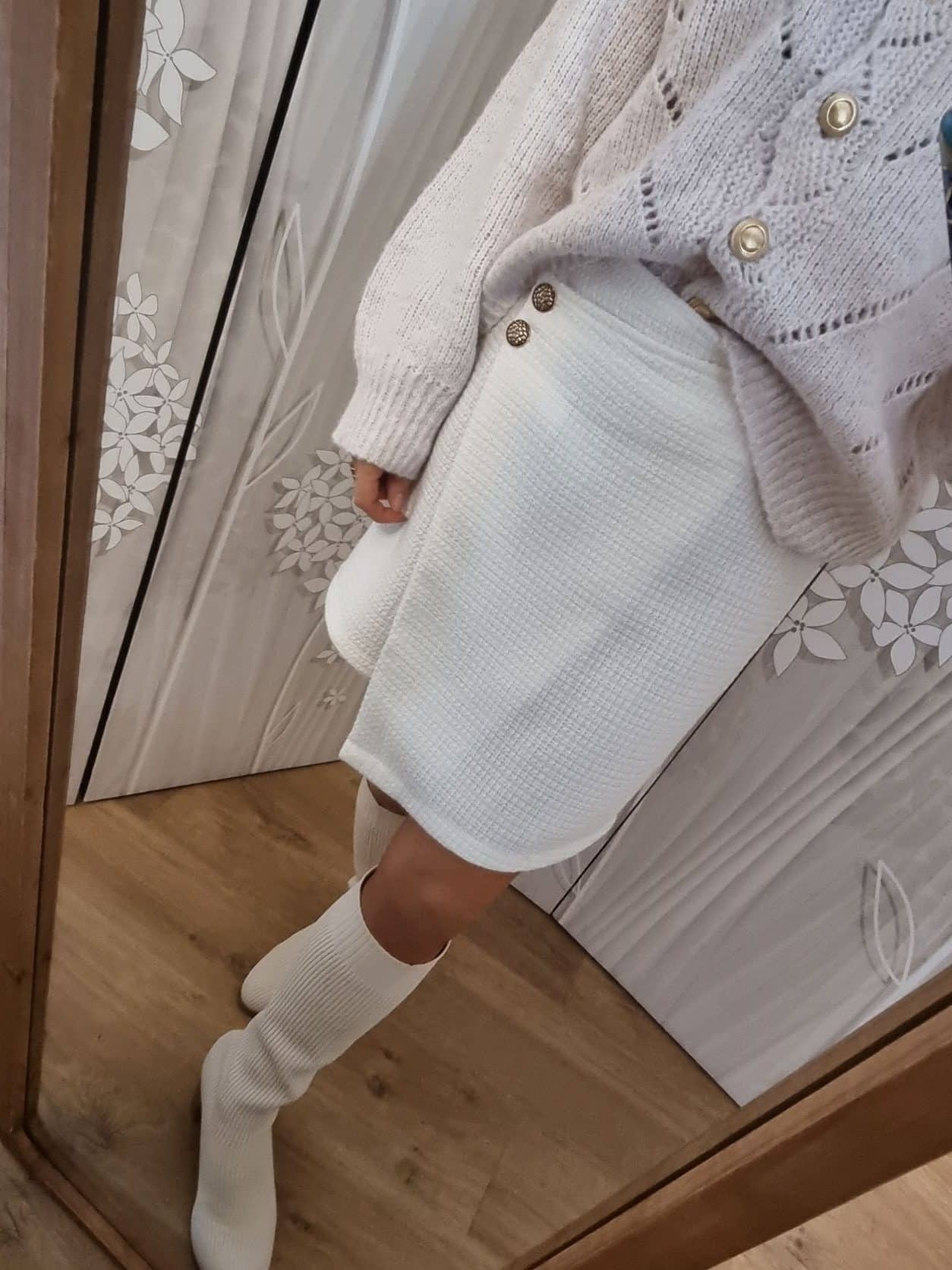 🌟 Affirmez votre style avec notre Jupe Portefeuille Courte, ceinture décalée et boutons ornementaux. 🌟