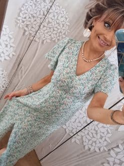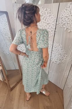 Plongez dans un tourbillon de style avec cette robe longue fendue à motifs doux. Ses manches courtes volantes apportent une dynamique aérienne , tandis que son dos nu audacieux dévoile subtilement votre peau. Les motifs doux ajoutent une touche de charme et de féminité. Cette robe allie élégance