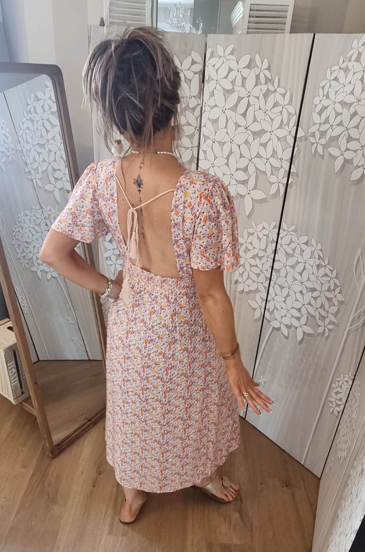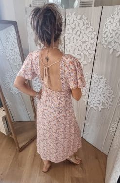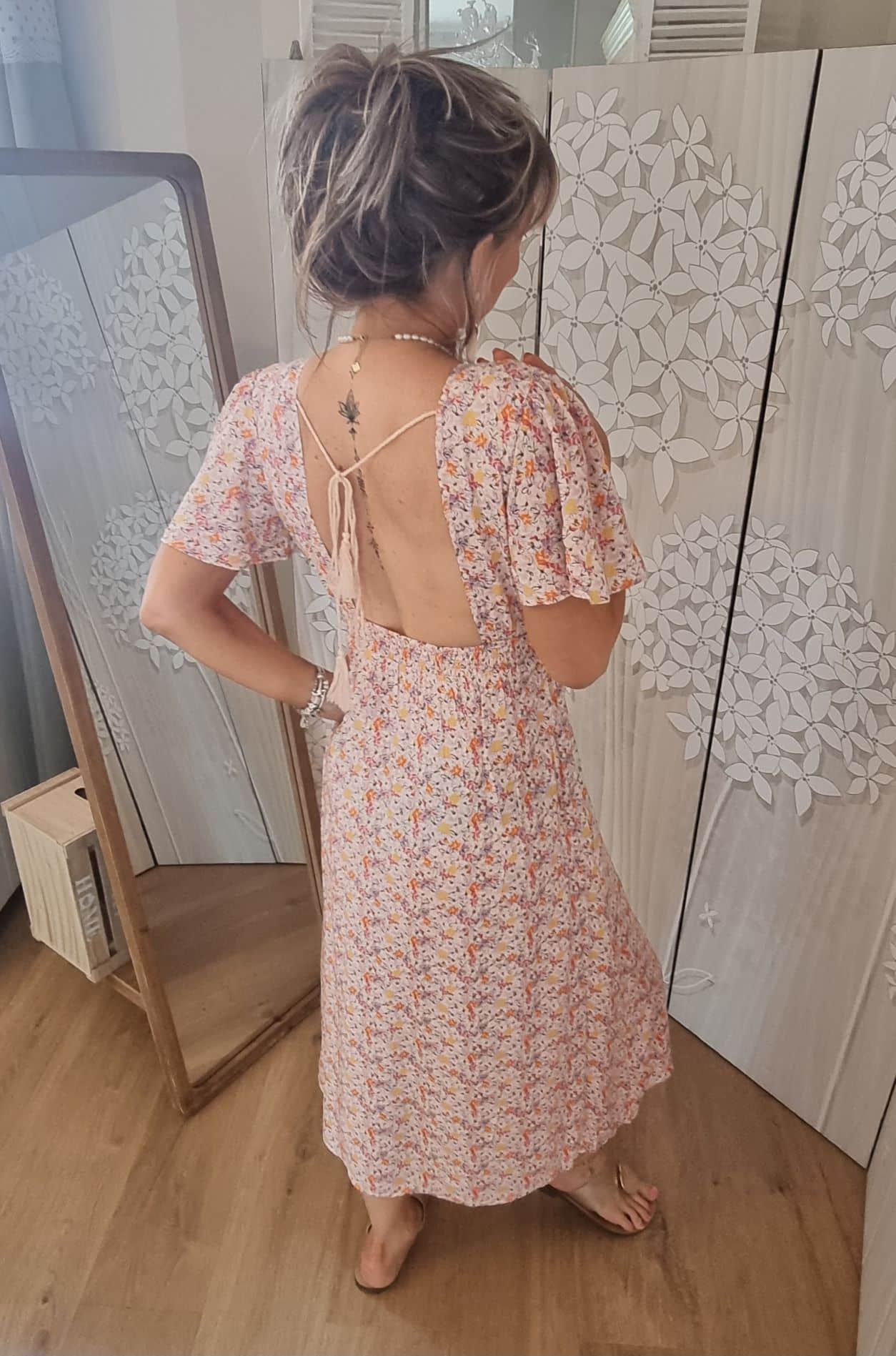 Plongez dans un tourbillon de style avec cette robe longue fendue à motifs doux. Ses manches courtes volantes apportent une dynamique aérienne , tandis que son dos nu audacieux dévoile subtilement votre peau. Les motifs doux ajoutent une touche de charme et de féminité. Cette robe allie élégance
