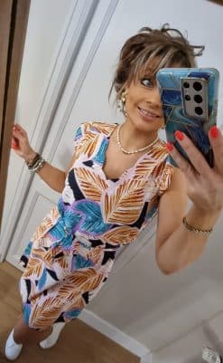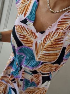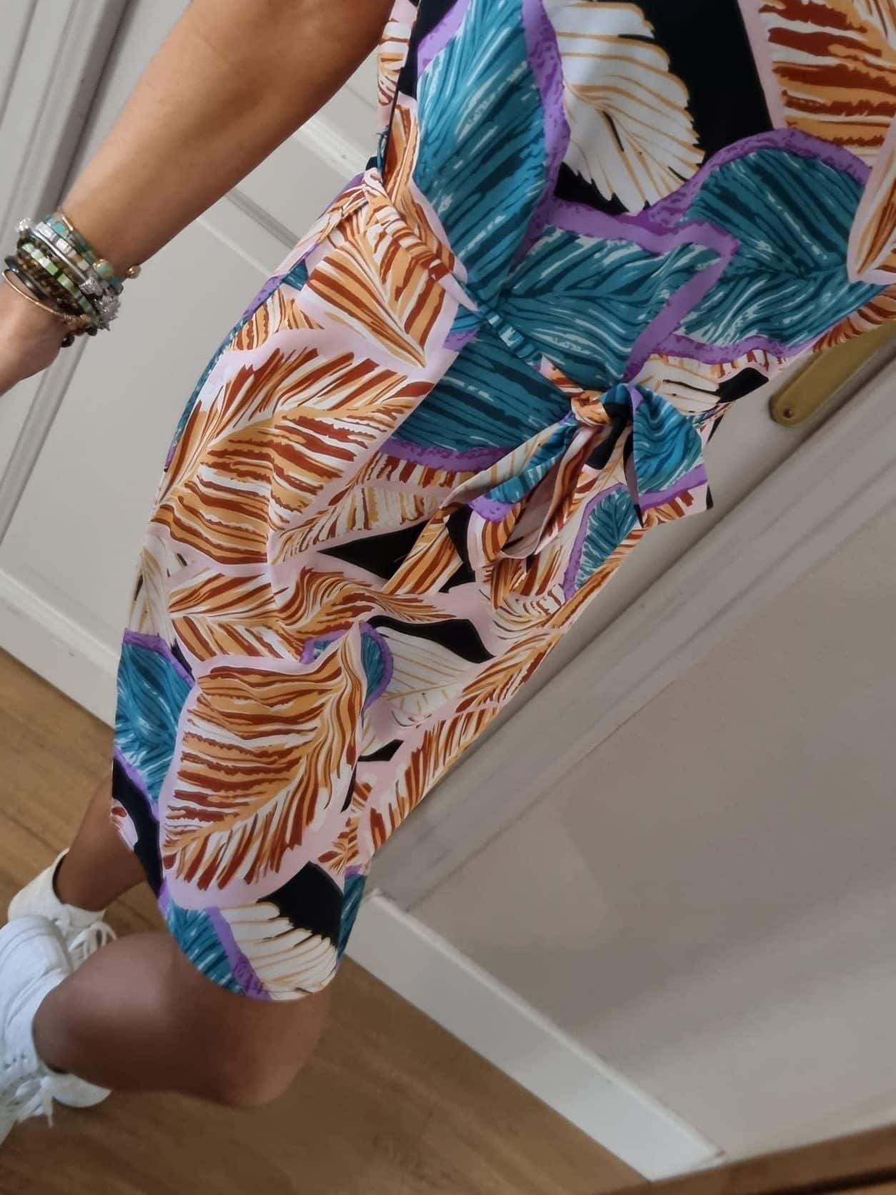 Un joli décolleté, des petites fronces sur les épaules, un imprimé sympa, et une ceinture lien pour une petite robe d’été chic ou détente suivant les accessoires !