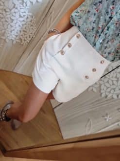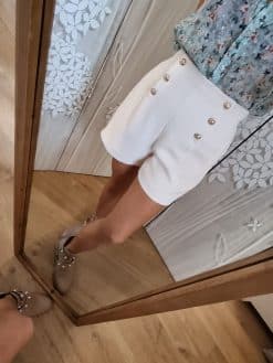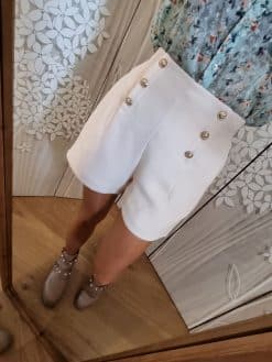 Les boutons en rangĂ©es astucieusement disposĂ©s sur le devant ajoutent une touche sophistiquĂ©e Ă  ce short, mettant en valeur votre look 🙃avec une Ă©lĂ©gance discrĂšte.